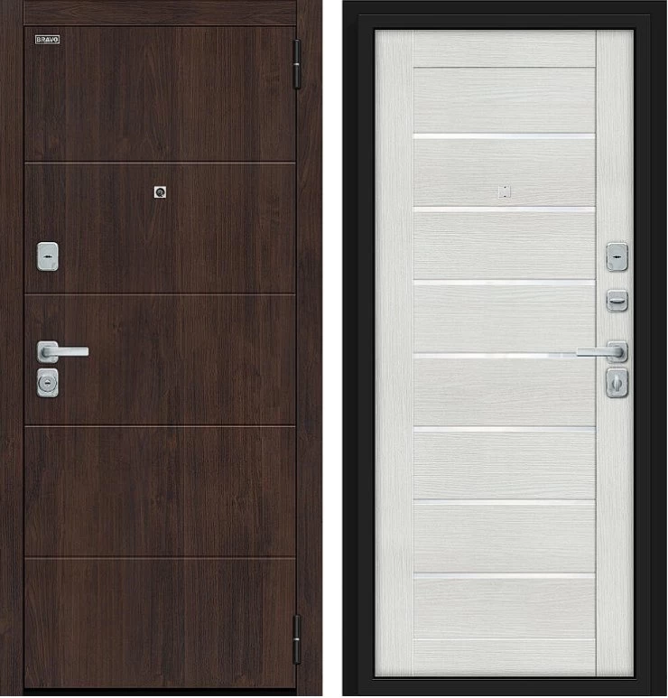 Надежная входная Дверь Браво Прайм/BChrome Almon/Bianco Melinga премиум класса по цене 39 831 руб. Большая толщина стали защитит от проникновения в ваш дом, квартиру или коттедж. Используется очень качественная фурнитура: замки, цилиндры, ручки, защелки. Покрытие и отделка двери изготовлено под внимательным контролем производителя. Дверь имеет долгий срок службы и гарантию.